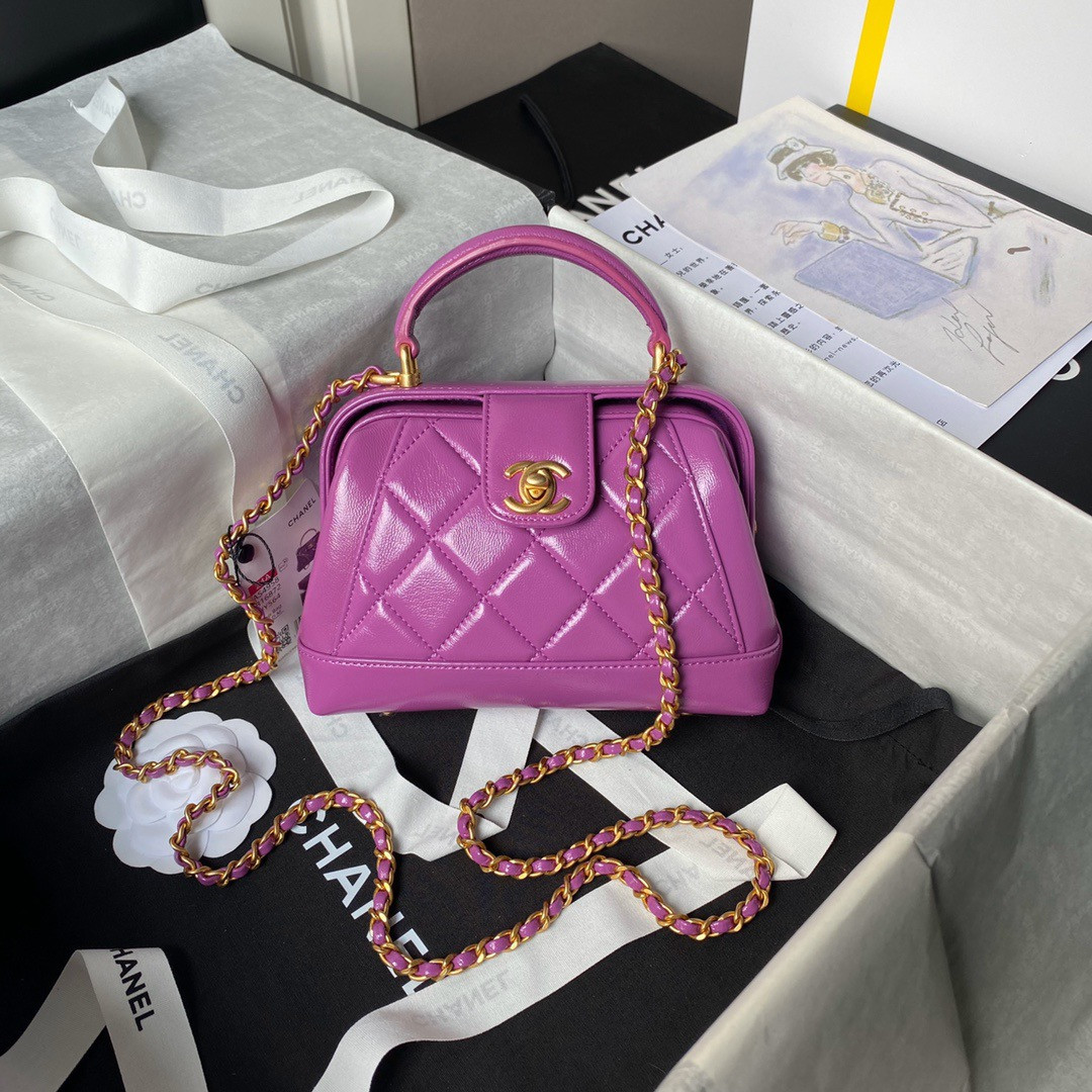 Ch*el mini bag with top handle shiny lambskin & gold-tone metal 12 × 18 × 7 cm