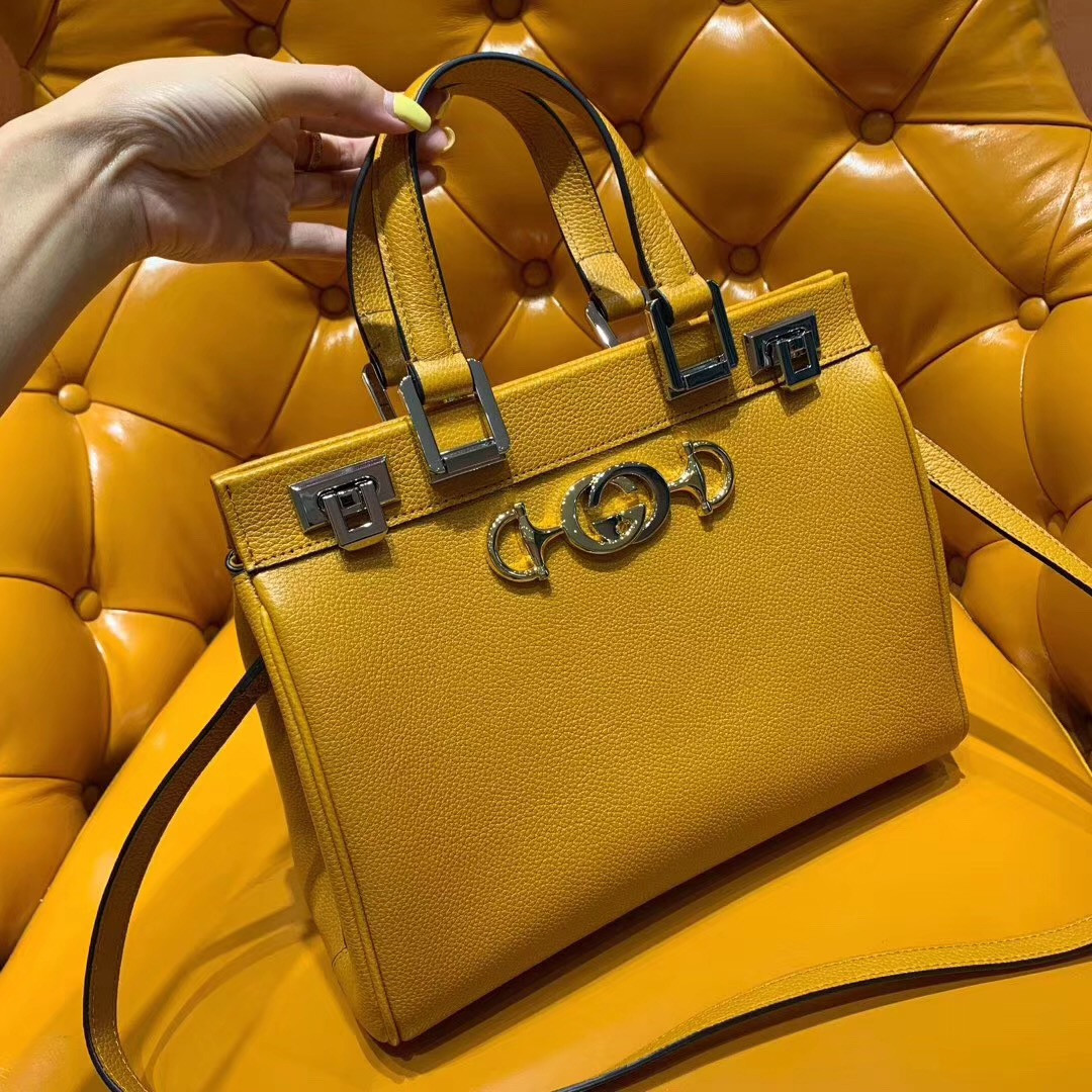 G*u*i zumi grainy leather small top handle bag